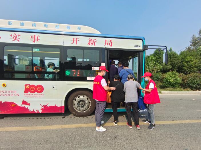 同時,在71路終點站孫家圩子,另一撥志愿者在這里開展了文明交通勸導志愿活動,由于該站乘客普遍年紀較大,志愿者們一邊引導他們有序排隊乘車,一邊扶老攜幼,小心攙扶老人上車,收到了老人們的交口稱贊。